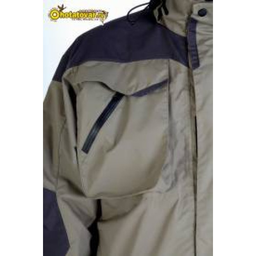 КУРТКА: Два больших кармана для рыболовных приманок, Два боковых кармана, Водонепроницаемый карман для документов на молнии, Водонепроницаемая застежка-молния, Капюшон, регулируемый в двух уровнях, Удлиненная задняя часть, Фиксатор, стягивающий низ куртки, Сетчатая подкладка.