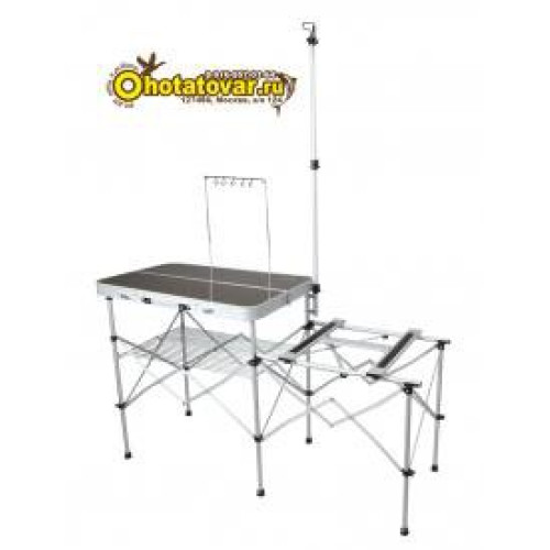 Кухня кемпинговая складная. Подставка под плиту, просторная рабочая поверхность, подвес для кухонных инструментов, решетка для хранения, кронштейн для лампы. В сложенном состоянии выглядит как компактный чемодан.