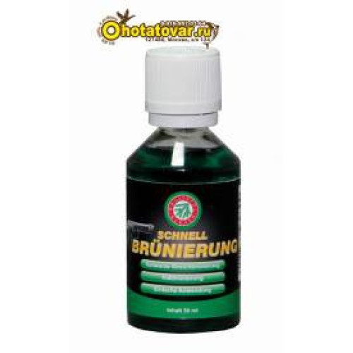 Способ применения: Оружие должно быть тщательно очищено от жира и смазки с помощью Robla-Kaltentfetter. Затем нанесите KLEVER-Schnellbrünierung с помощью кисточки на поврежденный участок. Вскоре после нанесения (примерно 3 минуты) появится жёлто-белое покрытие, которое следует смыть водой. Далее высушите обработанную поверхность мягким платком и нанесите спрей BALLISTOL или Gunex. Готово! (Обратите внимание, что KLEVER-Schnellbrünierung не действует на сталь, которая содержит более 3% хрома).