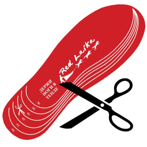 Для того, чтобы использовать согревающие стельки не надо менять имеющуюся обувь на новую, достаточно ножницами обрезать стельку с подогревом до нужного размера (от 36 до 46) по пунктирным линиям, вложить в обувь, прикрепить батареи и пользоваться, сохраняя ноги в тепле.