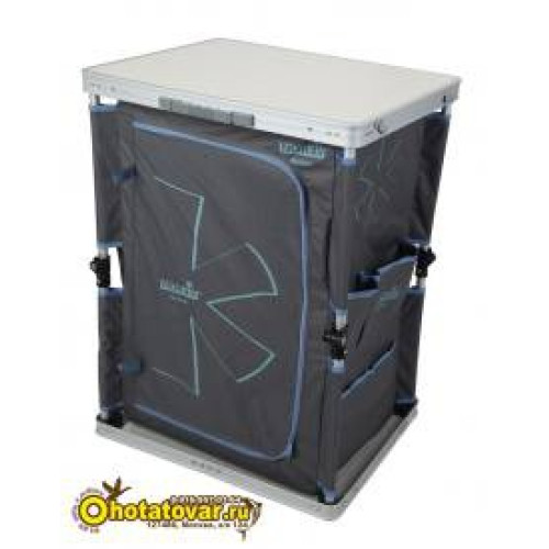 Складной стол-тумбочка с полками. Сетчатая задняя стенка для вентиляции. Моментально раскладывается и складывается в маленький чемодан.