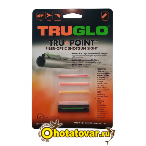 В комплект входит 4 оптоволокна: зелёное, красное, розовое и оранжевое. Яркие оптоволокна - вставки способствуют быстрому обнаружению целей в дневное время и в условиях низкой освещенности. Данные мушки значительно повышают скорость и точность прицеливания особенно в вечернее время.Система установки Slide-Lok™ запатентована, она позволяет устанавливать мушку без винтов, клея и магнита. Сначала внутренняя вставка устанавливается на планку ствола, а затем наружняя часть совместно с оптоволокном одевается на внутреннюю, подтягивая её.