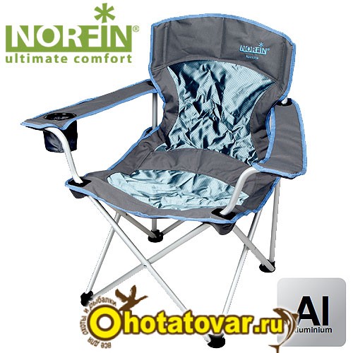 Туристический складной стул Norfin Verdal с алюминиевым каркасом. Мягкая спинка, тканевые подлокотники с подстаканником. При небольшом весе и компактности выдерживает большую нагрузку.