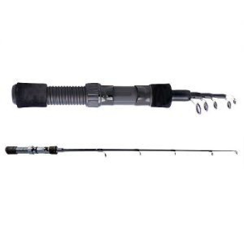 Зимние удочки для блеснения с выдвижным телескопическим хлыстиком, укомплектованным пропускными кольцами и тюльпаном с керамическими вставками. На неопреновой рукоятке установлен винтовой катушкодержатель.