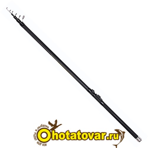 Телескопическое удилище среднего строя из композита, два верхних колена которого изготовлены из графита "IM6", а остальные - из облегченного стекловолокна. Такая комбинация позволила уменьшить вес удилища, теперь его легче держать в руках продолжительное время. Верхнее колено имеет дополнительное разгрузочное кольцо, бланк укомплектован кольцами со вставками "SIC" с креплением на одной ножке.