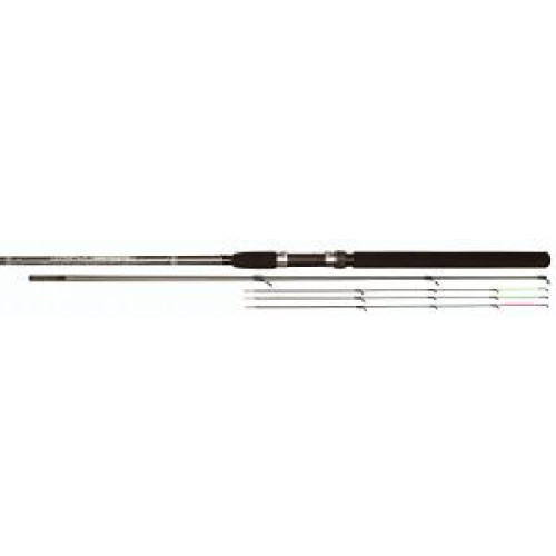Надёжный, среднего строя, трёхколенный фидер с двумя сменными вершинками-сигнализаторами разной жёсткости. Бланк, изготовленный из облегчённого стекловолокна, имеет крепление колен по типу In Steek, укомплектован кольцами с керамическими вставками, удобной неопреновой рукояткой и надёжным винтовым катушкодержателем. Рекомендуется для широкого круга рыболовов.