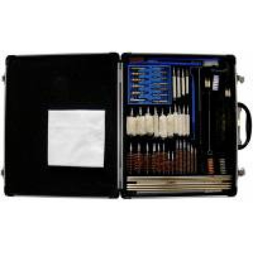 Универсальный набор для чистки оружия в кейсе из прочного алюминия подходит для большинства используемых калибров оружия: ружья, карбины, винтовки, пистолеты. Набор для чистки оружия состоит из двух шомполов (калибры от .17 до 12), 4-х адаптеров для ершиков, 14-ти латунных ершиков (калибры .17, .204, .22, .243, .270, .30, .357/38/9 мм, .40, .50, .54, 12, 16, 20, .410), из 14-ти мягких ершиков, 2-х наборов салфеток-патчей для чистки, полировочной тряпки, 3-х дополнительных ершиков (нейлоновый, нержавейка, бронзовый), 2-х дополнительных мягких ершей, ершиков двухсторонних для чистки чоков и казенной части оружия, набора из 13 спиральных латунных ершиков.