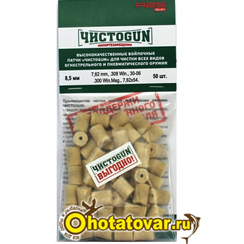 Войлочные патчи ЧИСТОGUN, 7,62 mm, 308 Win, 30-06, 300 Win.Mag, 7,62х54