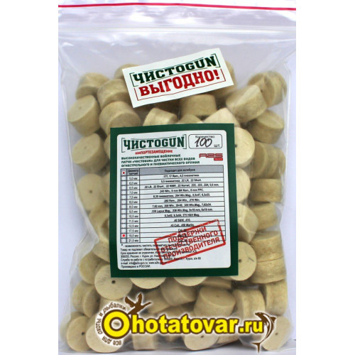 Войлочные патчи ЧИСТОGUN, калибр 16, 100 шт/уп