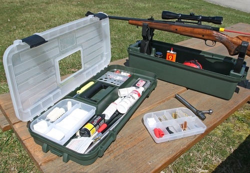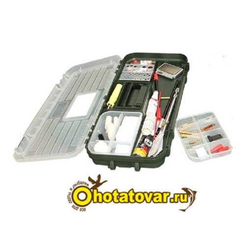 Shooting Range Box переносной пластиковый центр для чистки и ухода за нарезным и гладкоствольным оружием, черный с полупрозрачной крышкой.