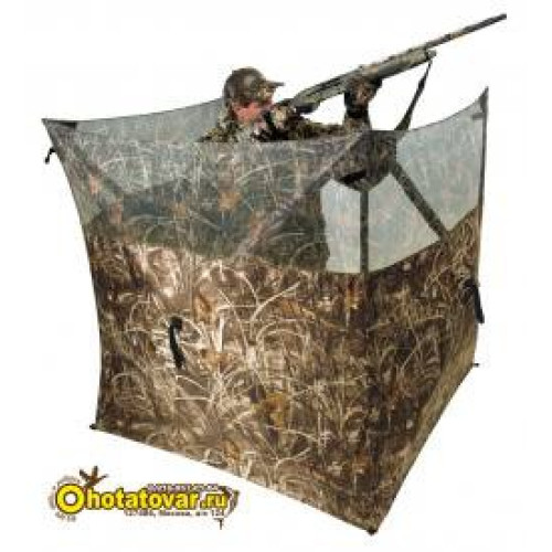 Засидка Field Hunter, цвет Advantage Max4 (камыш) Ameristep – портативное укрытие для одного человека на охоте. Засидка оригинальной конструкции с тремя стенками позволяет охотиться по всему периметру засидки, что обеспечивает возможность вести наблюдение и стрельбу на 180 градусов. Габариты засидки позволяют охотиться сидя. Благодаря внешним эластичным лентам конструкция маскируется ветками, сеном и прочей растительностью. Материал износостойкий, не даёт бликов. Компания Ameristep позиционирует данную модель как засидку на гуся, засидку на уток, и на голубей. Хранение: Обязательно просушить изделие, нельзя его хранить мокрое или влажное. Не рекомендуется оставлять изделие под воздействием прямых солнечных лучей на длительное время (она может выгореть).