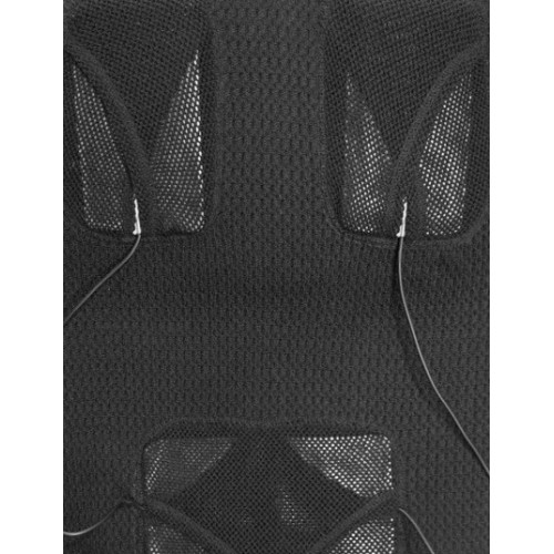 Расположение греющих элементов: В жилете один греющий элемент большего размера расположен на спине в области поясницы и два стандартных на лопатках. Греющие элементы размещаются в специальных карманах. Греющие элементы фуфайки подключаются к аккумулятору. Аккумулятор располагается в отдельном внутреннем кармане.
